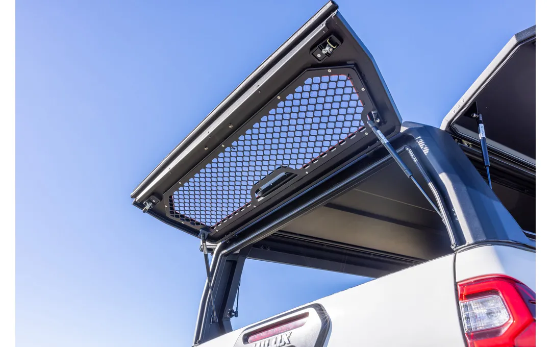 The bonded toughened rear glass delivers superior strength and safety, while the dust-proof key-alike locks ensure that your cargo remains secure and protected, even in the harshest conditions. The innovative integrated airflow vent works to keep dust out while maintaining optimal cabin pressure during off-road journeys.