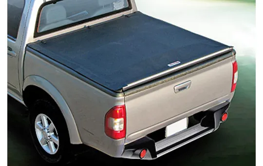 Soft tonneau cover made of PVC, it can be wrapped in 3 simple steps: unlock the fasteners, wrap the tonneau until the cab, block the tarp with the straps.